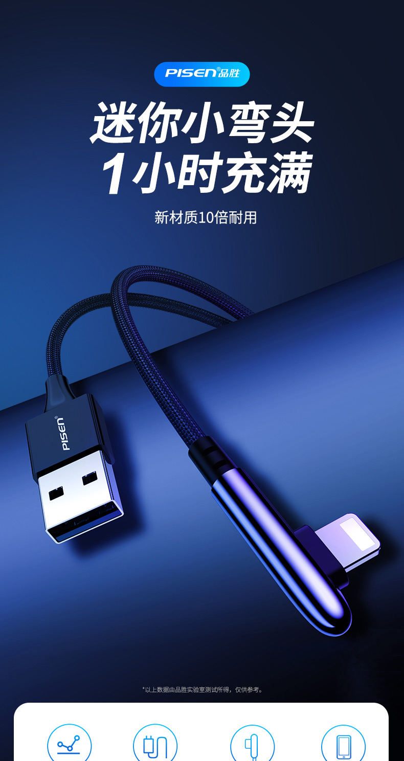 品胜适用20W苹果13数据线iPhone12充电线6S器11手机8Plus闪充PD快充XR加长2米冲电X平板ipad弯头7P游戏xsmax